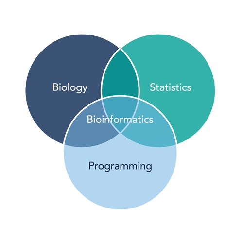 Figure 1: Bioinformatics is a discipline that uses programming and statistics to analyze biological questions.