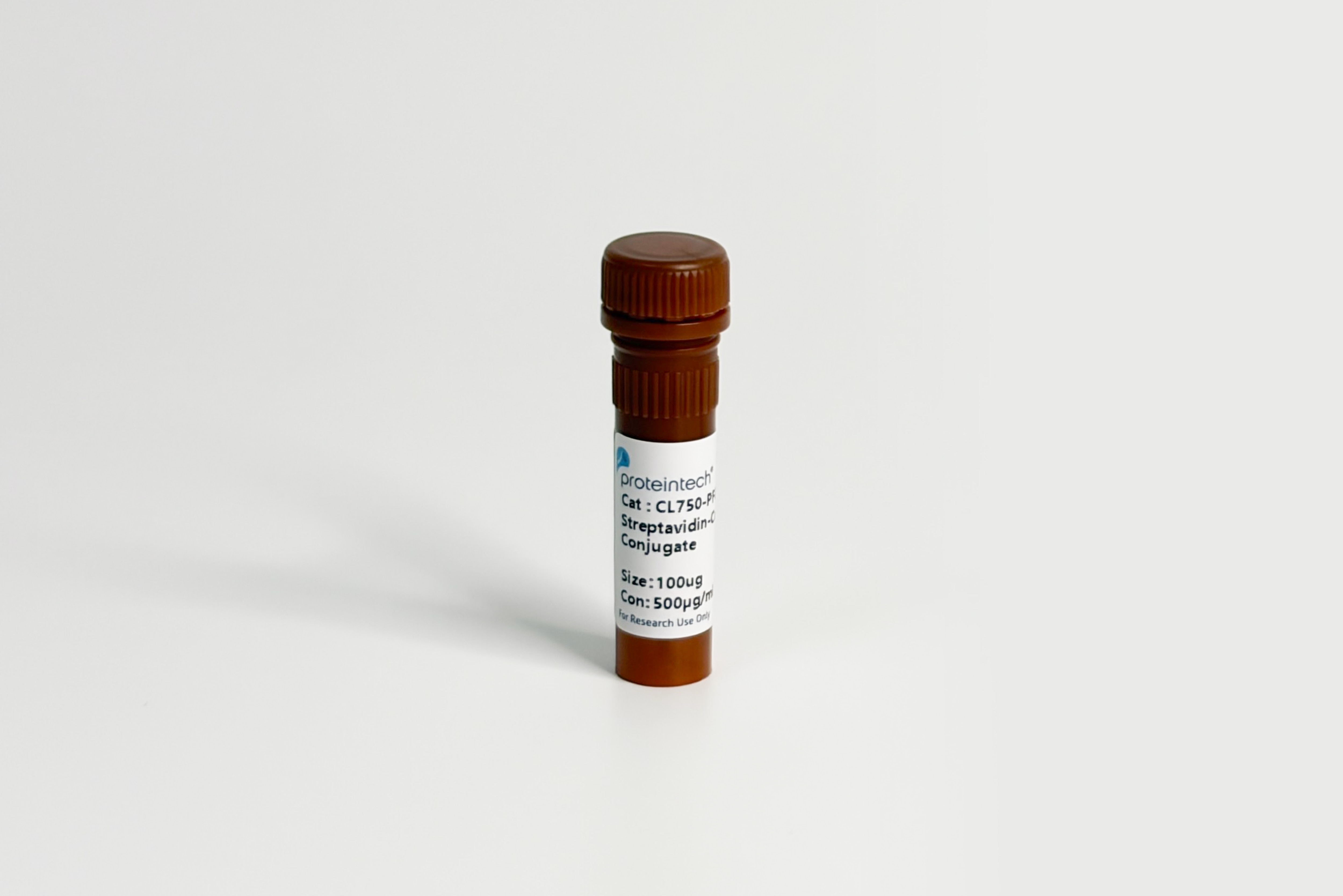 Streptavidin-CoraLite® Plus 750 Conjugate (CL750-PF00030) is a conjugate solution product of a fluorescent marker (CoraLite® Plus 750) and streptavidin. Suggested working solution concentrations or dilutions range from 1:200 to 1:1000. It can be used in conjunction with biotinylated proteins (Biotin-conjugated affinity-purified secondary antibodies of various types, or Biotin-conjugated antibodies and chromatography-grade proteins) for a variety of immunoassays.