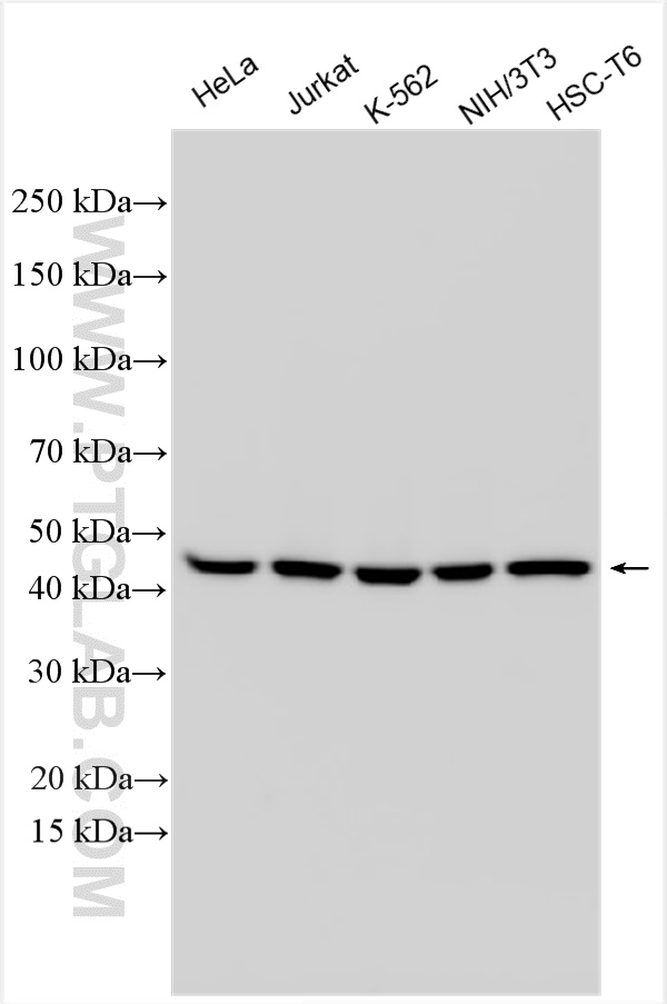 WB : 1:5000-1:50000 IP : 0.5-4.0 ug for IP and 0.5-4.0 ug for 1.0-3.0 mg of total protein lysate for WB IHC : 1:300-1:1200 IF/ICC : 1:200-1:800