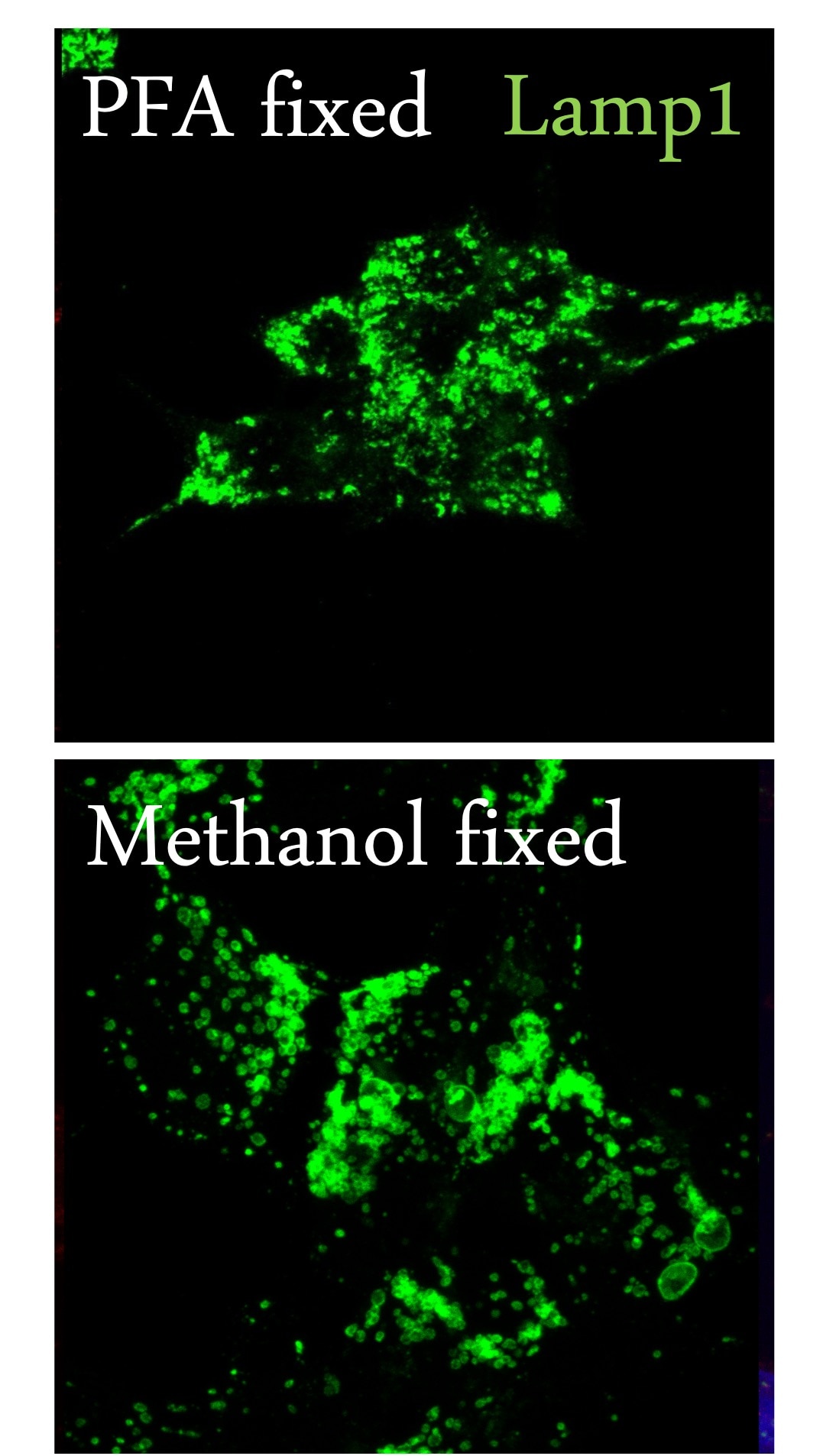 FH Shivali (Verified Customer) (10-07-2025) | LAMP1 antibody showed strong, specific lysosomal staining in IF. Methanol fixation worked better than PFA, which gave weaker signal and higher background.