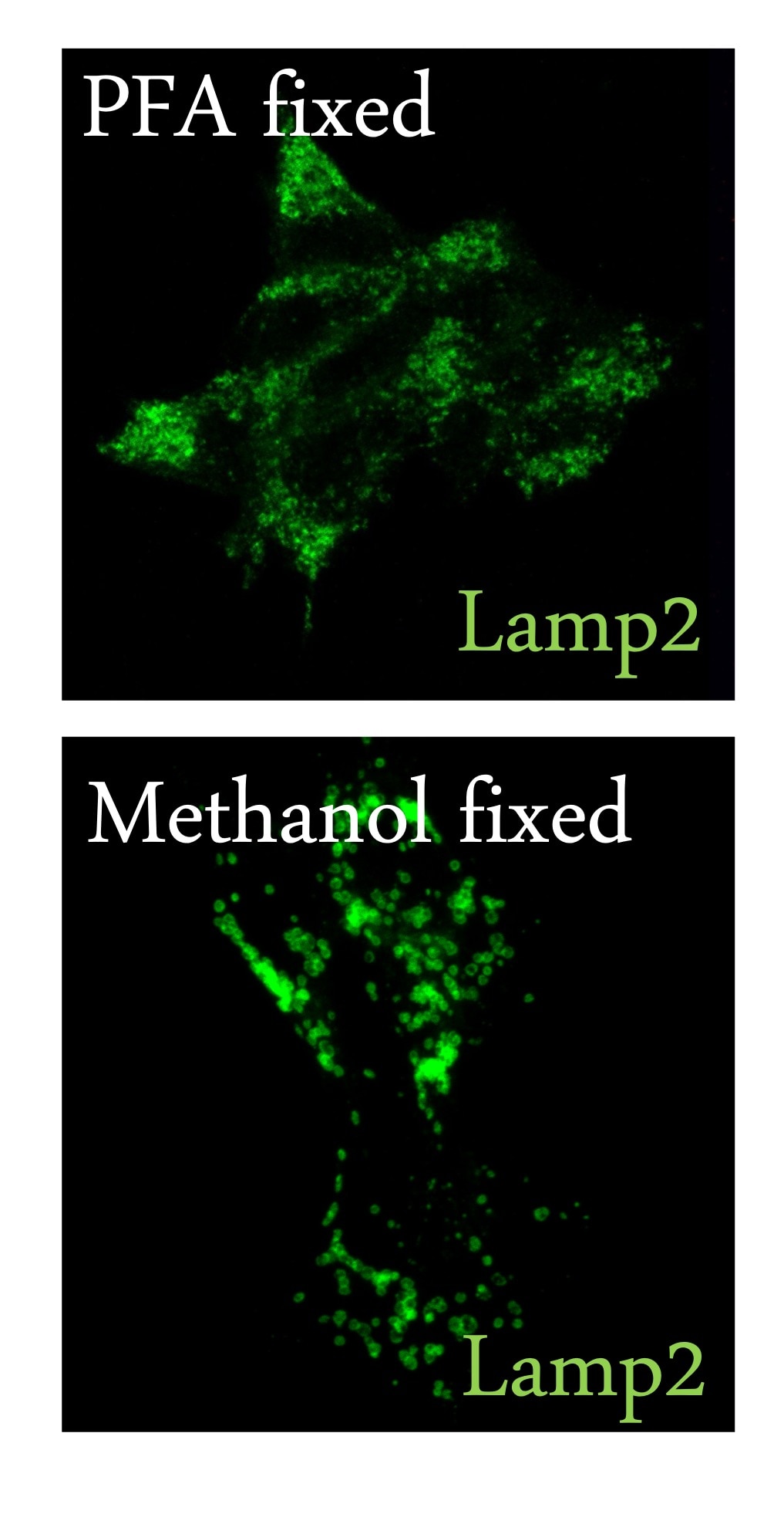 FH Shivali (Verified Customer) (10-07-2025) | LAMP2 antibody gave clear, specific lysosomal staining by IF. Methanol fixation worked best, while PFA resulted in poor signal and higher background.