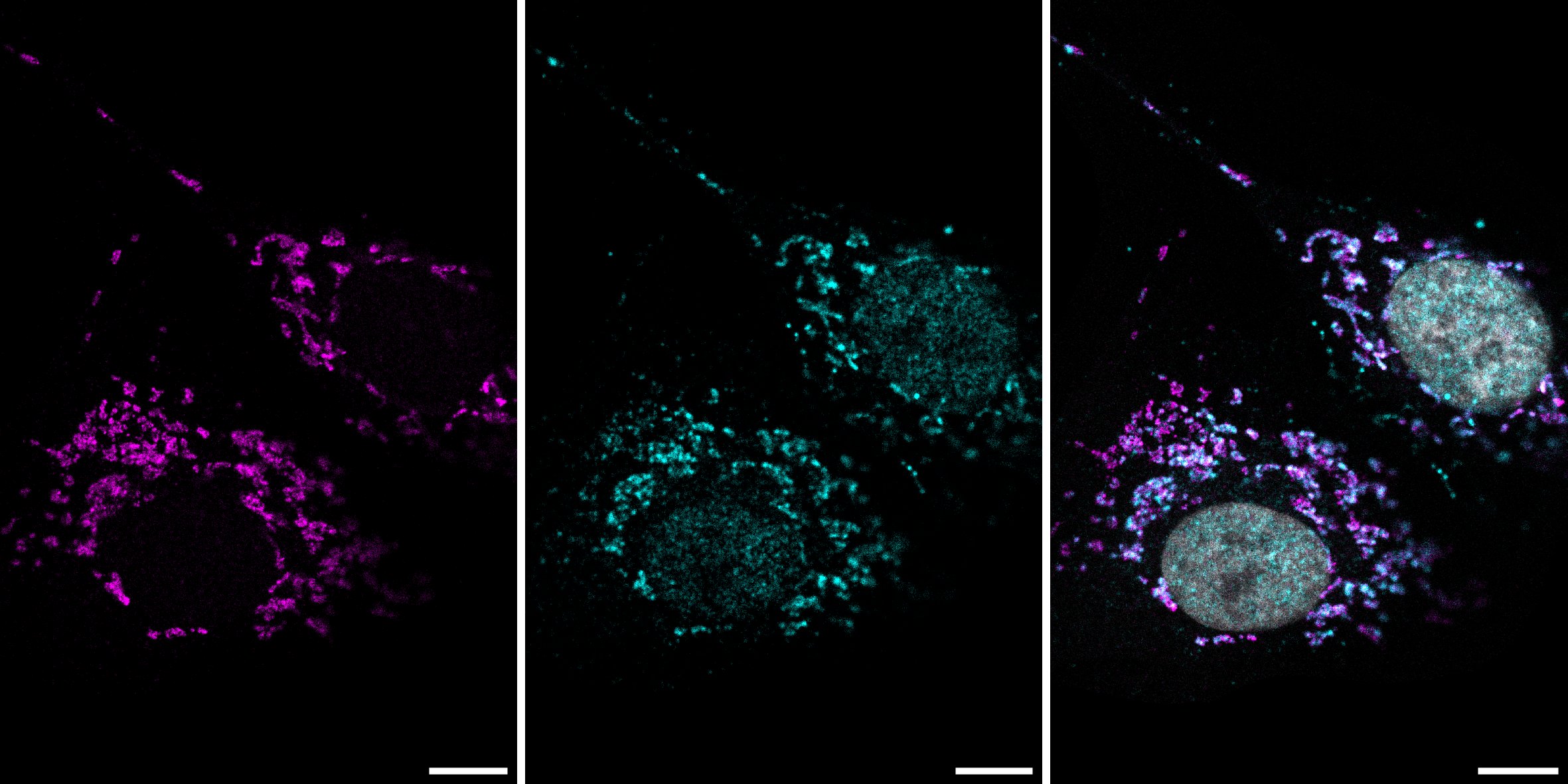 FH Yan (Verified Customer) (11-03-2025) | 4% PFA fixed BJ-5ta cells immunofluorescence of TOM20 (Magenta) and MRPL45 (Cyan)