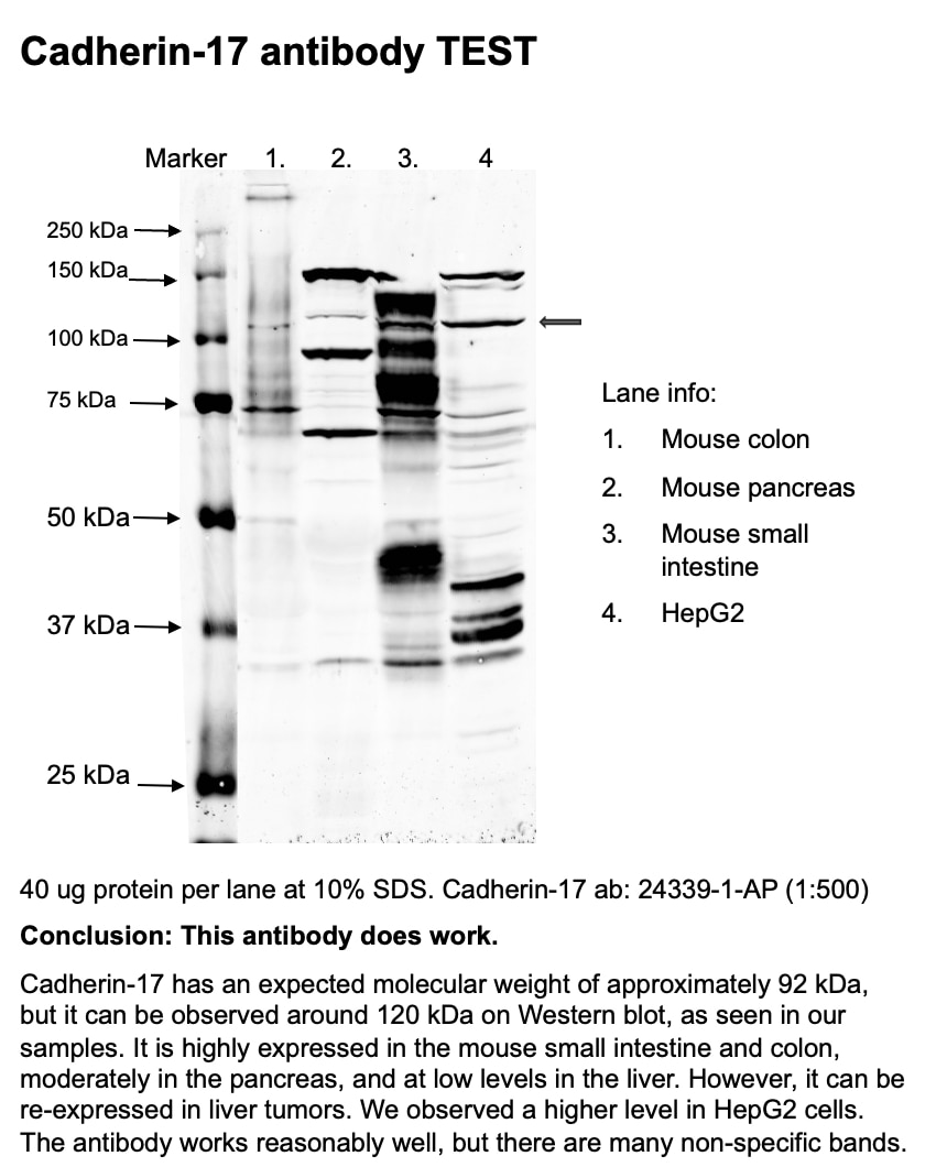 | WB protocol for Cadherin-17 antibody 24339-1-AP | Download protocol |