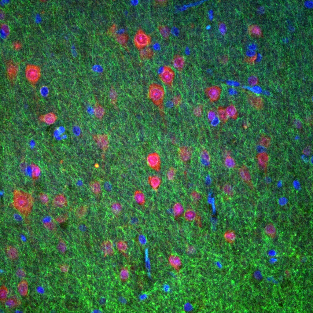 FH Reyes (Verified Customer) (09-24-2025) | EGFR (in green) worked perfectly marking a specific subtype of astrocytes in human brain cortical dysplasia tissue.