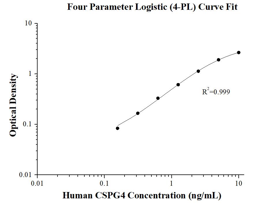 KE00465 is a solid phase sandwich Enzyme Linked-Immuno-Sorbent Assay (Sandwich ELISA). The human CSPG4 ELISA kit is to be used to detect and quantify protein levels of endogenous human CSPG4. The assay recognizes human CSPG4. An antibody specific for human CSPG4 has been pre-coated onto the microwells. The human CSPG4 protein in samples is captured by the coated antibody after incubation. Following extensive washing, another horseradish peroxidase (HRP)-conjugated antibody specific for human CSPG4 is added to detect the captured human CSPG4 protein. For signal development, followed by Tetramethyl-benzidine (TMB) reagent. Solution containing sulfuric acid is used to stop color development and the color intensity which is proportional to the quantity of bound protein is measurable at 450 nm with the correction wavelength set at 630 nm.