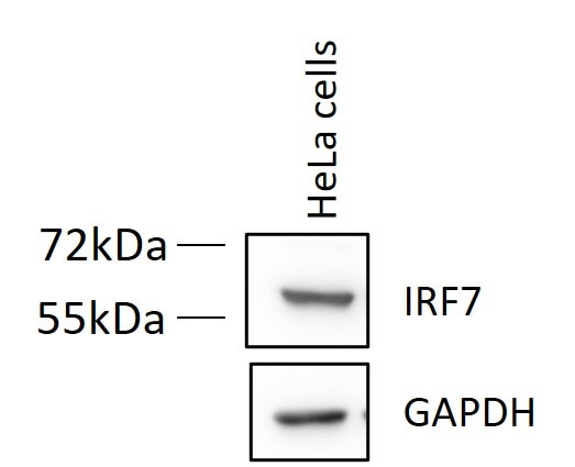 FH Margaux (Verified Customer) (10-25-2025) | I used this antibody to detect IRF7 in HeLa cells by western-blot. It worked very well at the dilution 1/2000 and it could easily be diluted more.