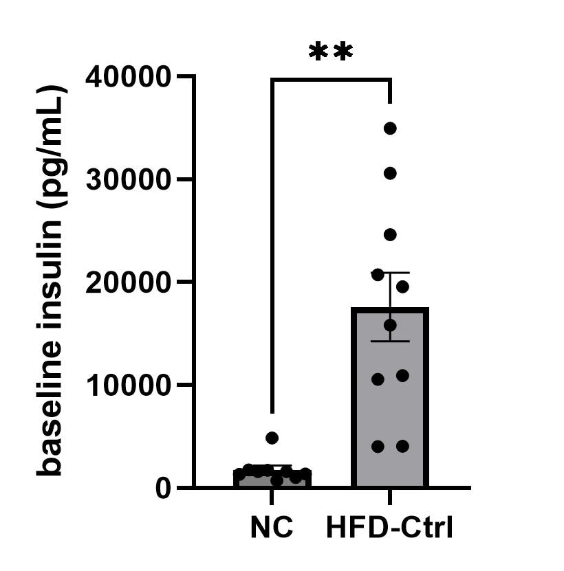 FH Dan (Verified Customer) (08-25-2025) | C57BL/6 male mice fed with normal chow or HFD for 10 weeks and then serum levels of insulin determined using ELISA.