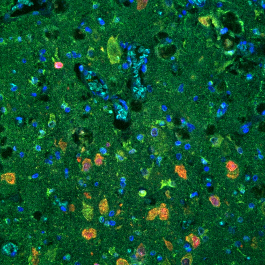 FH Reyes (Verified Customer) (09-24-2025) | pAKT (in green) worked very nicely inTSC mutated human brain tissue.