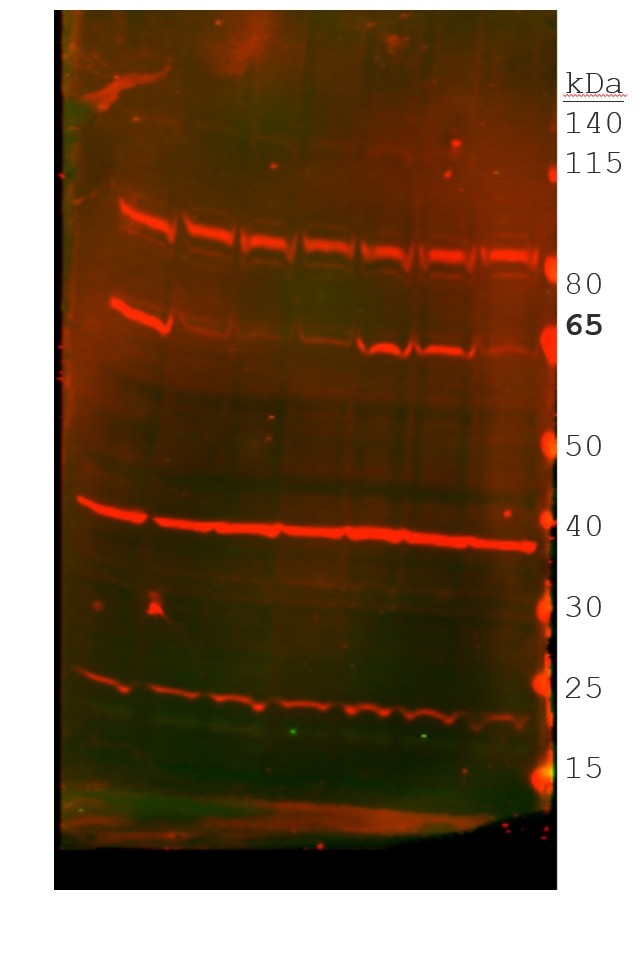 FH Eric (Verified Customer) (11-12-2025) | The band at around 80kDa is the expected molecular weight. I don't know what the lower bands are. My blots using Abclonal A4523 are much cleaner.