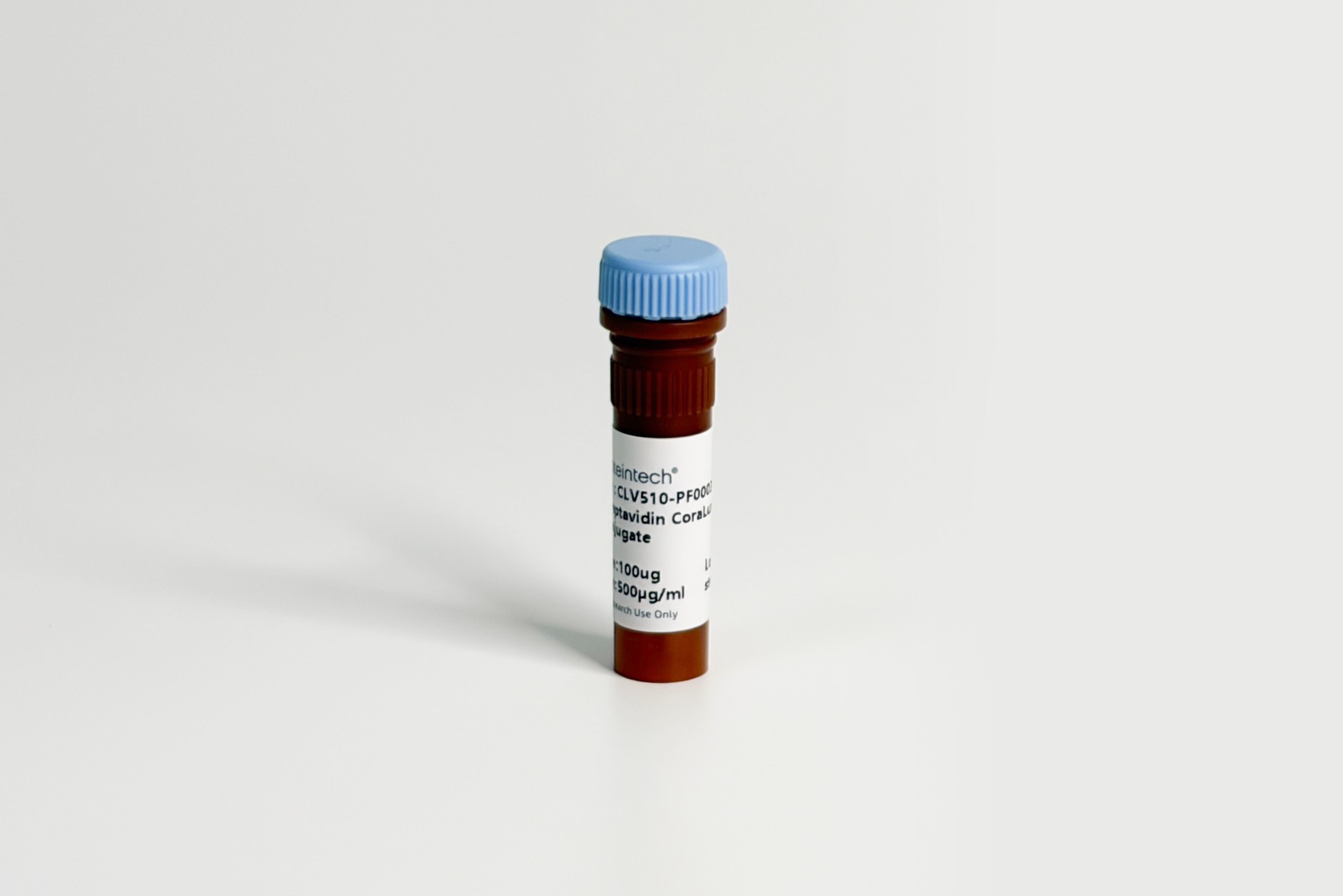 Streptavidin-CoraLux Violet 510 Conjugate (CLV510-PF00030) is a conjugate solution product of a fluorescent marker (CoraLux Violet 510) and streptavidin. Suggested working solution concentrations or dilutions range from 1:200 to 1:1000. It can be used in conjunction with biotinylated proteins (Biotin-conjugated affinity-purified secondary antibodies of various types, or Biotin-conjugated antibodies and chromatography-grade proteins) for a variety of immunoassays.